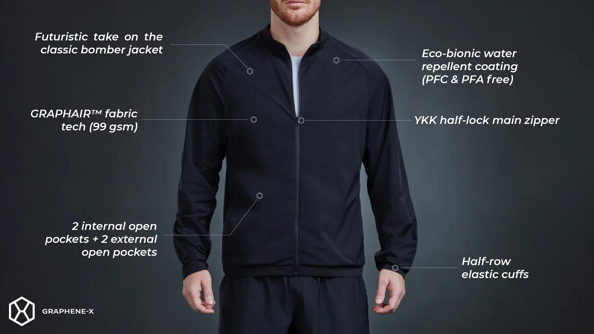 The air fabric's silky touch, ultra-lightweight nature, and wind-protection capability inspired us to reimagine the classic bomber jacket. We've retained the essence of this timeless style while reinventing it for the modern lifestyle. This results in a jacket that effortlessly transitions from your daily commute to the gym, and then to the boardroom. Its design represents a visual breakthrough, offering an unparalleled blend of futuristic aesthetics and functional brilliance.