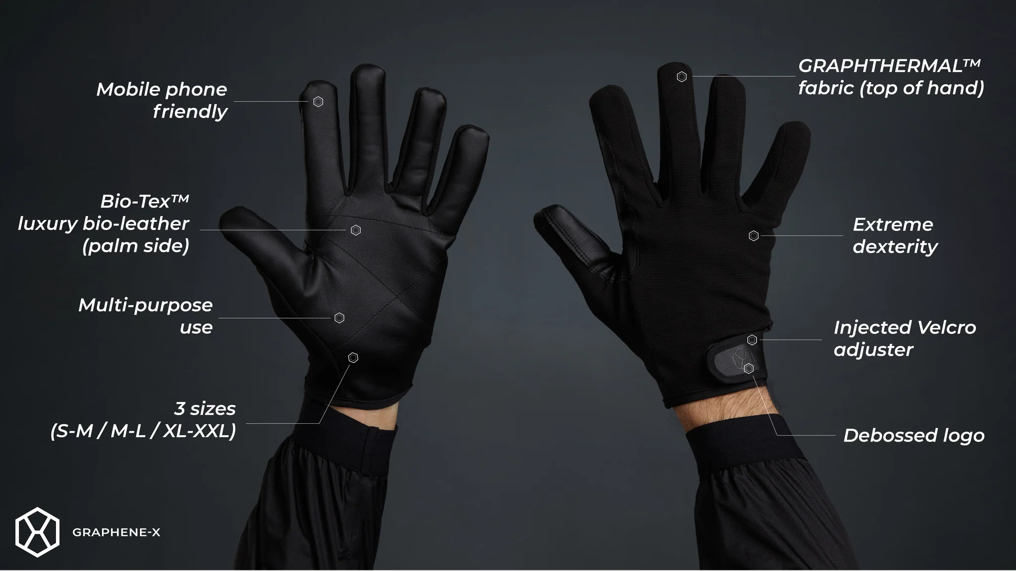 Bio-based leather on the palm side delivers grip and durability, while graphene-integrated fabric on the back provides strength, stretch, and next-gen performance.