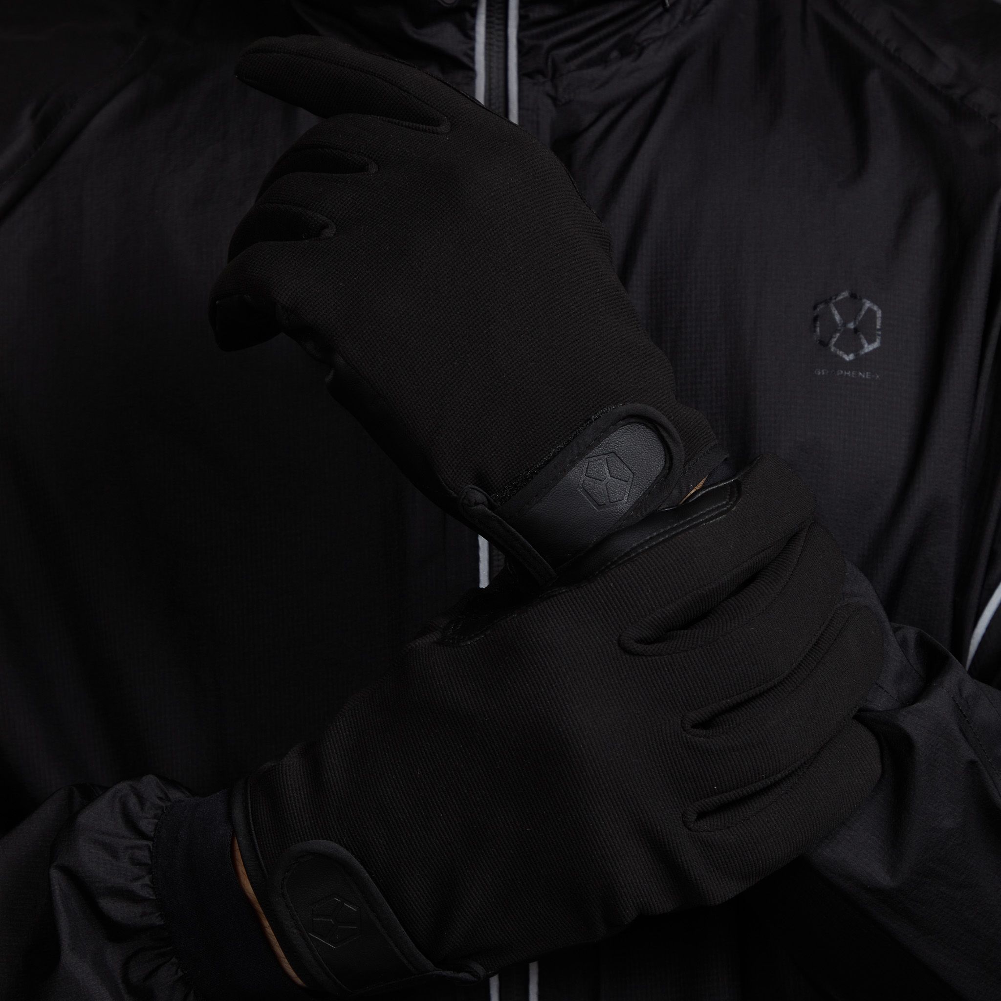 Conductive fibers in the fingertips let you use your phone or touch devices without taking the gloves off.