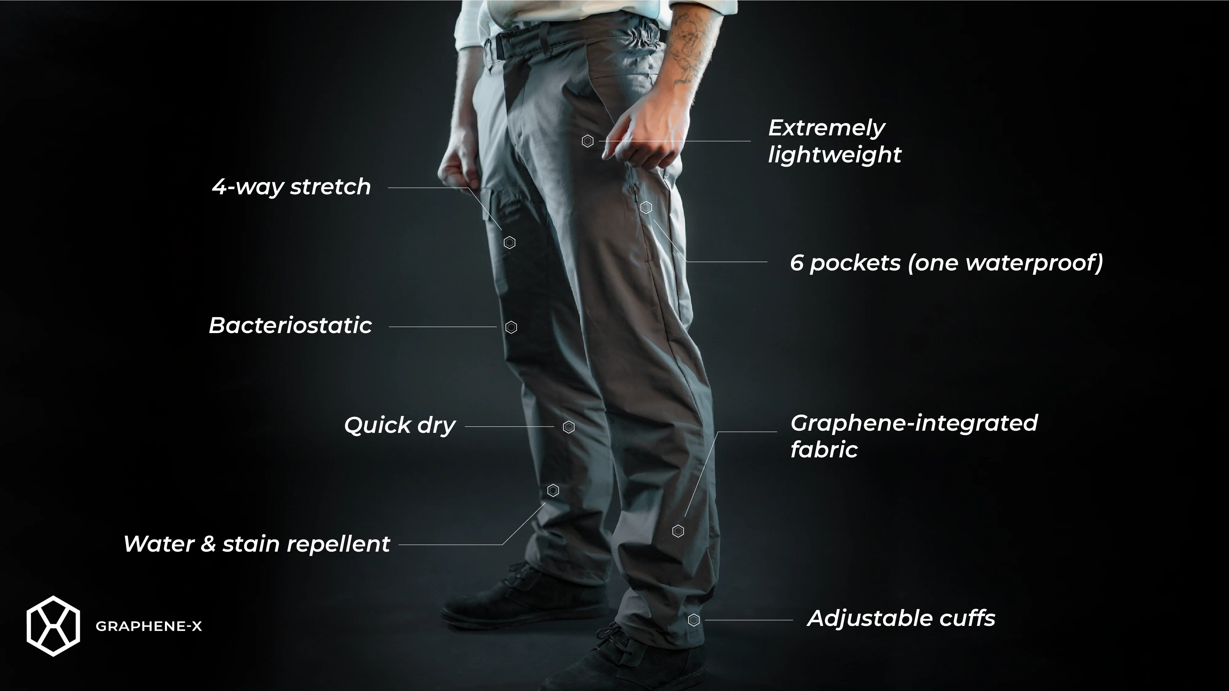 Graphene-integrated fabric keeps weight down without sacrificing durability, making them easy to wear or carry anywhere.