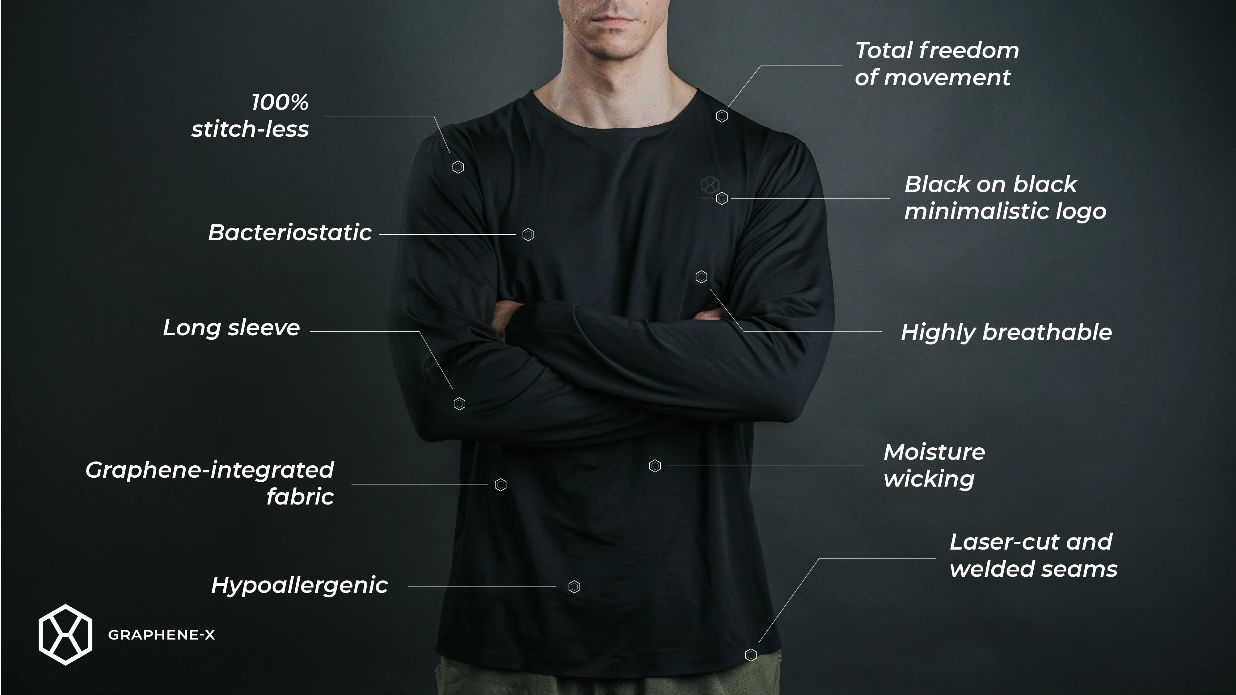GRAPHDRY™ fabrics incorporate graphene, a nanomaterial renowned for its exceptional hydrophobic and antibacterial properties. This allows for efficient moisture wicking, while its antibacterial nature prevents the growth of odor-causing bacteria. The unique combination of these properties makes of this graphene-integrated fabric the ideal choice for high-intensity activities where comfort and freshness are paramount.