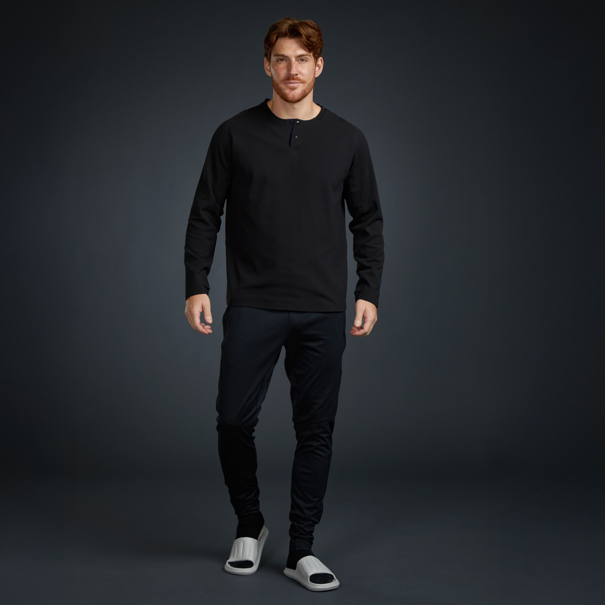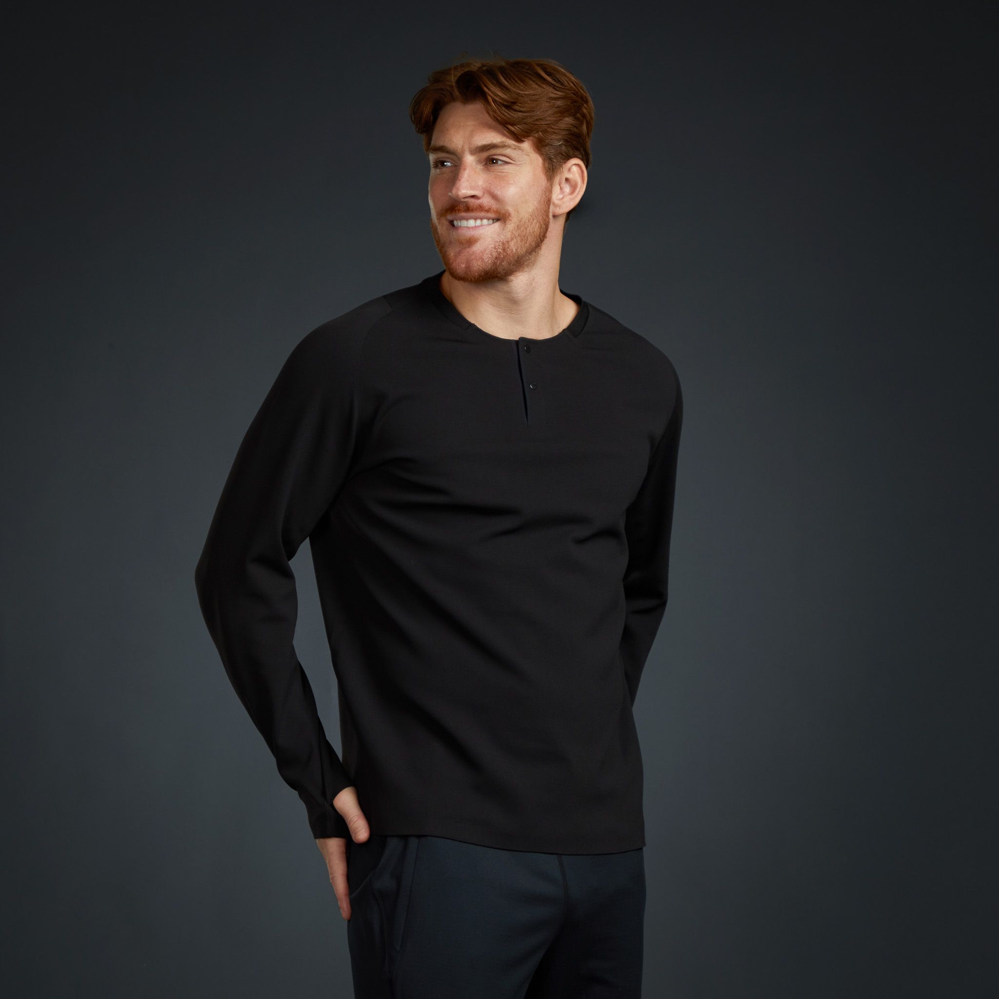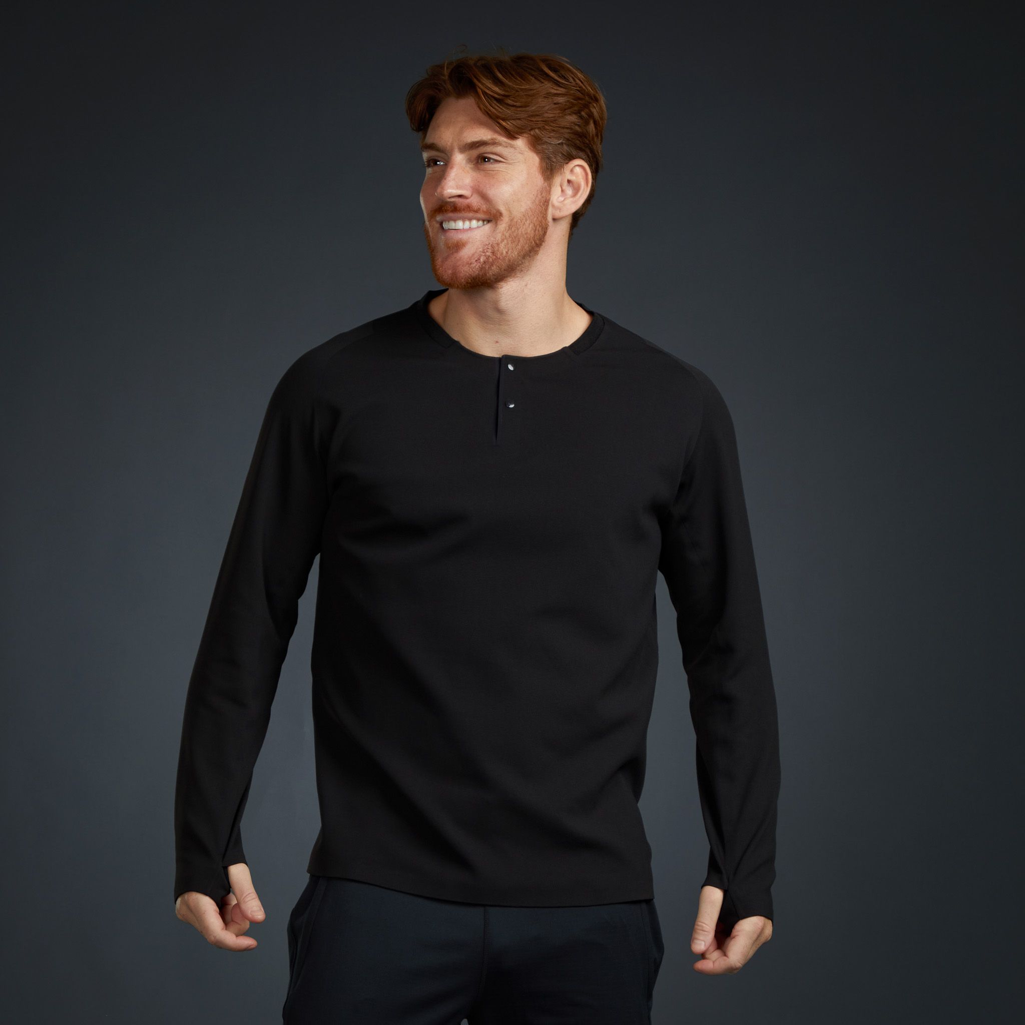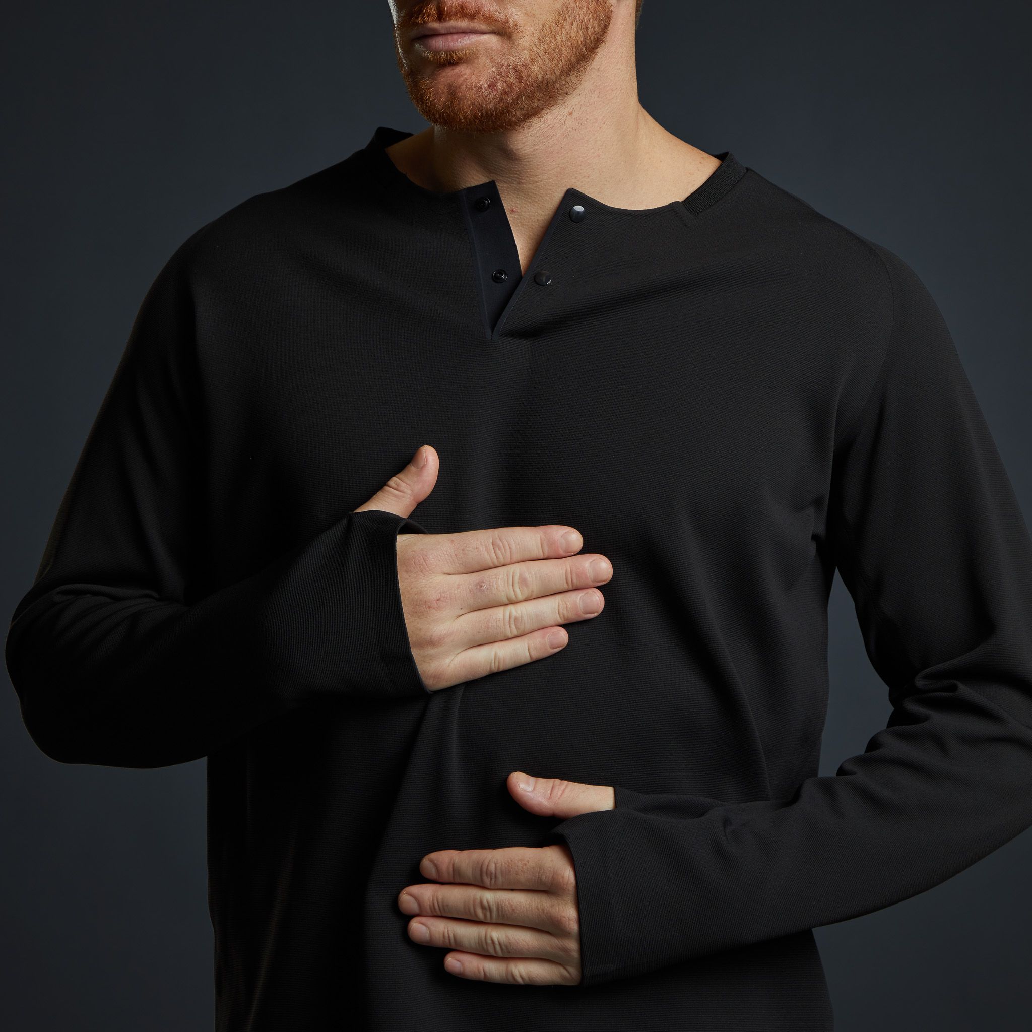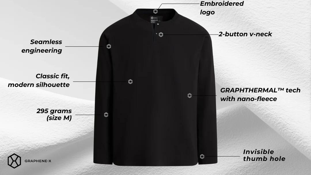 Engineered for those who demand more from their everyday essentials. It combines cutting-edge GRAPHTHERMAL™ technology with a seamless construction that eliminates stitch lines and friction. On the inside, an ultra-soft nano fleece delivers comfort against the skin, while the outer face is engineered tough enough to handle travel and daily wear. Clean lines, invisible thumbholes, and a discreet black-on-black embroidered logo make this Henley a minimalist staple that looks as sharp in the city as it feels on the move.