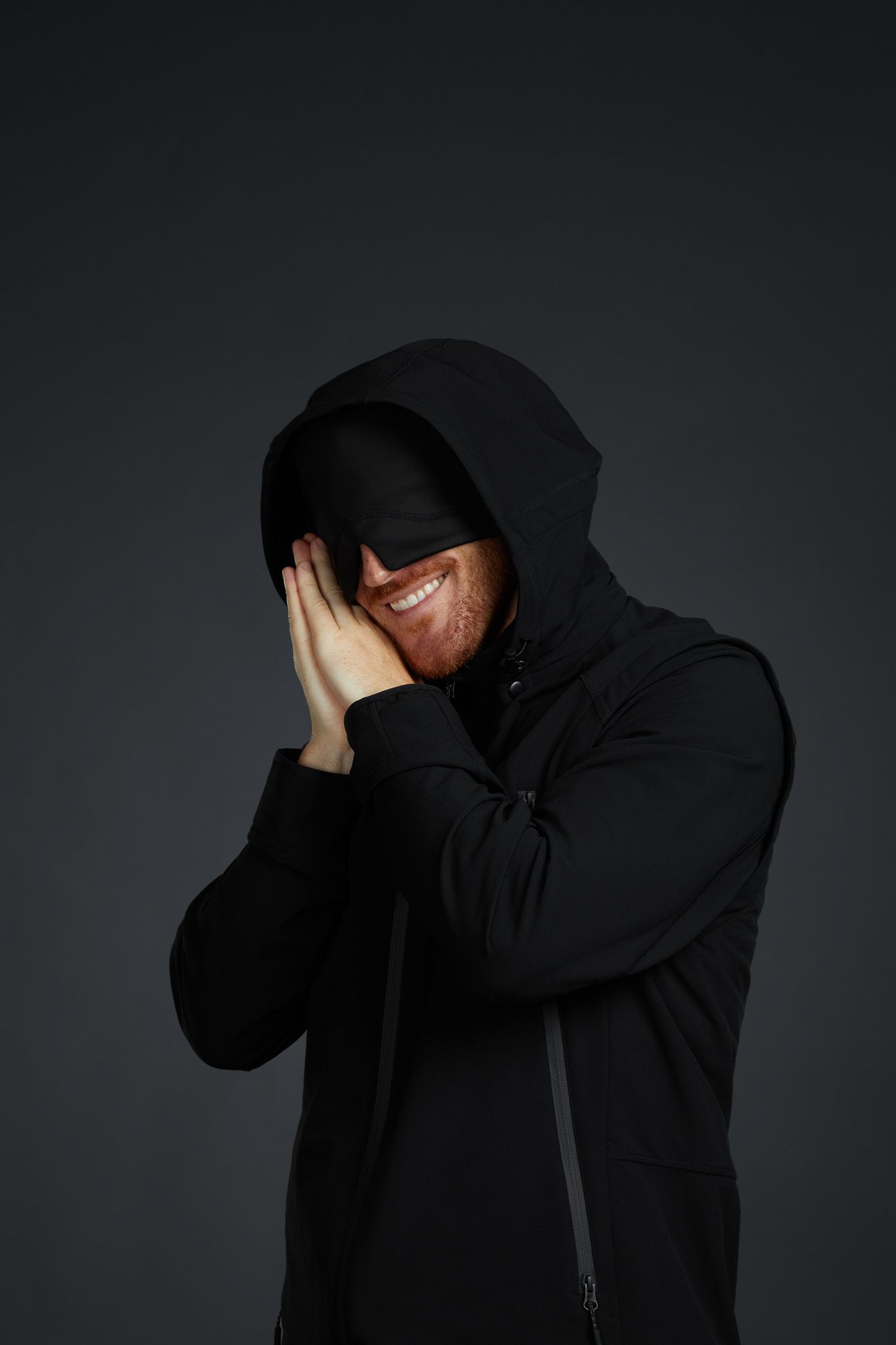 Integrated into the hood for warmth or blackout sleep on flights; detachable when not needed.